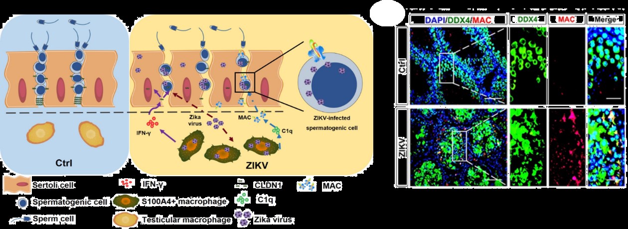 ZIKV感染后S100A4+单核/巨噬细胞分泌C1q激活补体系统从而损害生精细胞