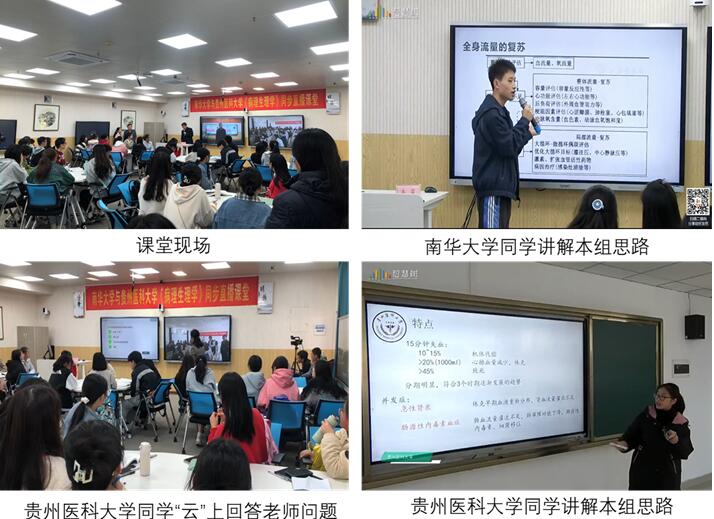 基于互联网下现代化信息技术的先进教学手段,为促进区域教育共同发展,加强校际交流,太阳成tyc33455ccwww和南华大学病理生理学教学团队,通过远程同步直播课堂教学的形式,以《休克》中“休克的处理目标是什么”为学习目标主题进行了深入的交流和研讨,双方院校的教务处相关领导共同出席了本次直播课程。