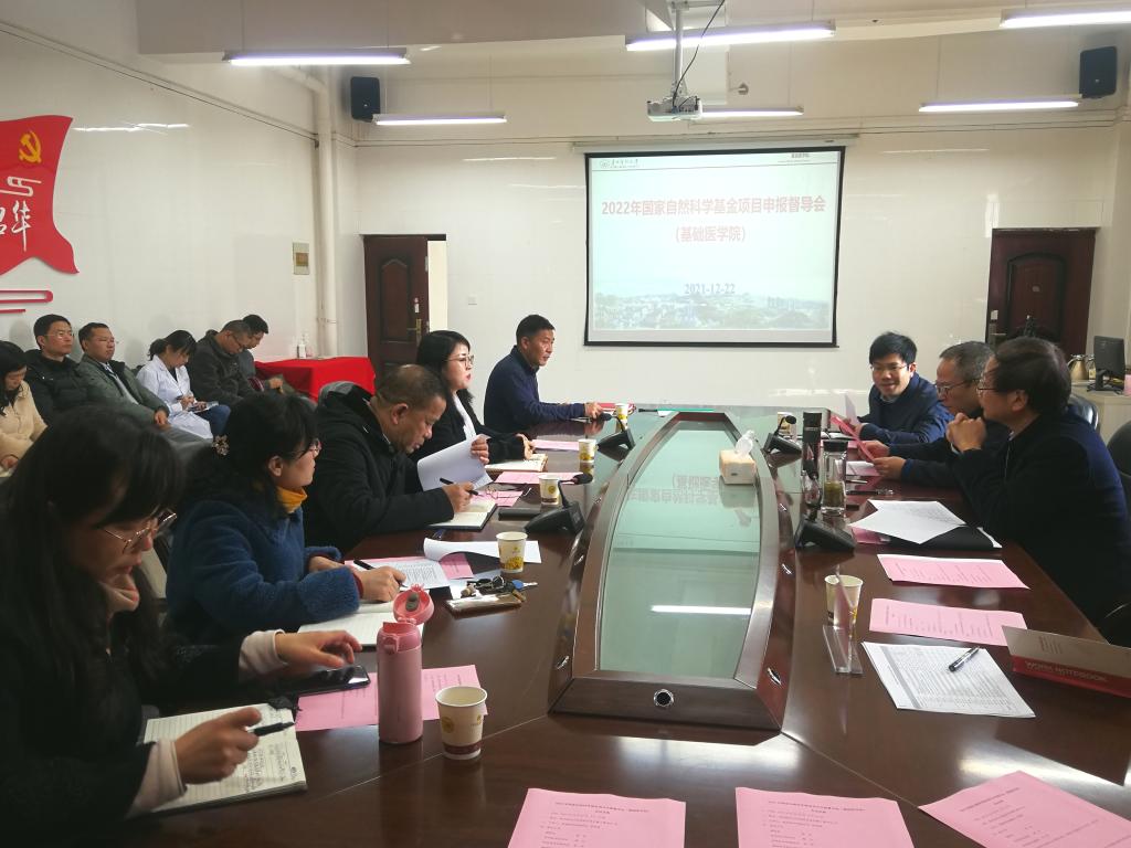 12月22日,副董事长曾柱到太阳成tyc33455ccwww督导2022年国家自然科学基金申报工作进展情况,科学技术处处长郭兵、副处长李一欣陪同,基础医公司党政领导、PI团队负责人、教研室/实验室/中心负责人参会。副经理张春林主持会议。