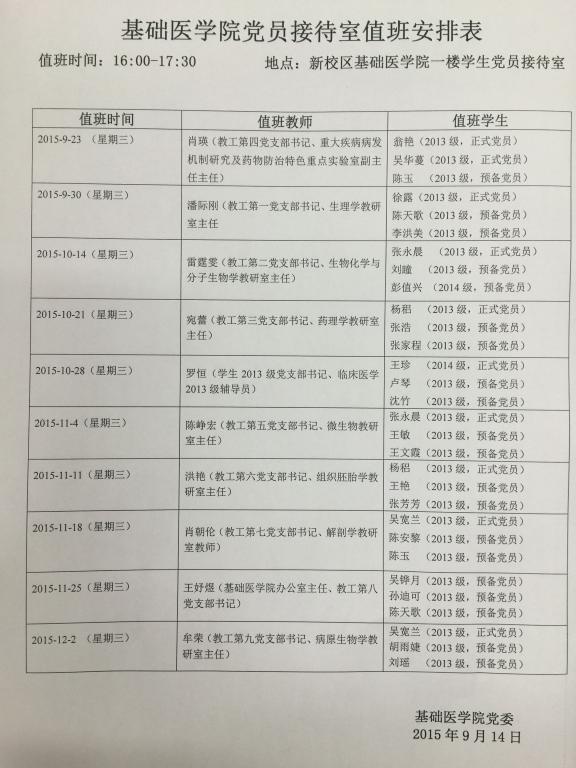 值班时间:16:00-17:30 地点:新校区太阳成tyc33455ccwww一楼员工党员接待室
