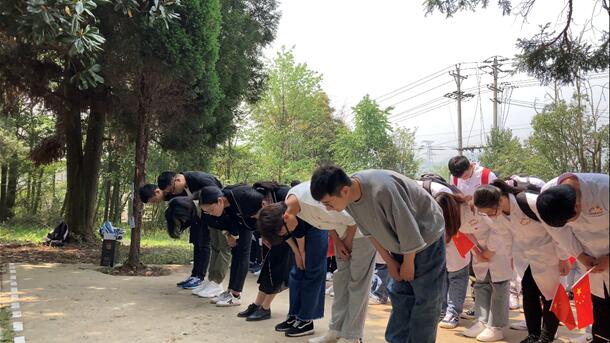 马场镇烈士陵园苍柏掩映、庄严肃穆。鲜花祭英烈,哀思祭忠魂,“协和班”全体同学心怀无限感恩和崇敬之情,在老师的带领下向革命先烈敬献鲜花,并深深鞠躬表达对先烈的深切缅怀之情,深切缅怀革命先烈的丰功伟绩,颂扬革命先烈的崇高精神。