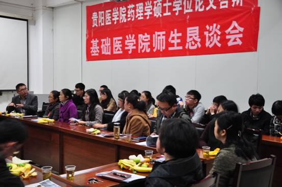 为更多、更近、更深入的了解员工的所思、所想、所需,创建新型师生关系,营造一个温馨、和谐的人文环境,实现师生互悦,教学相长的目的,临床医学2011级大三上学期师生恳谈会于2013年11月14日在药理学会议室召开。校员工处、基础医公司党政领导、学科教研室的教师代表、年级辅导员及员工代表分别参加了此次的师生恳谈会。