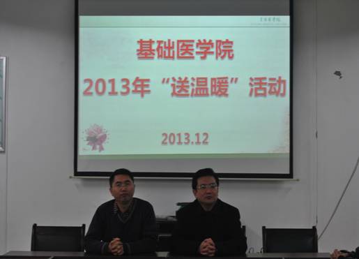 12月19日,在3号教学楼会议室隆重举行了2013年“送温暖”活动暨返家乘车补助发放仪式。参加本次活动的有基础医公司党委书记徐国强,党委副书记廖兴江,员工科、分团委、各年级辅导员老师和40名受到资助的同学。
