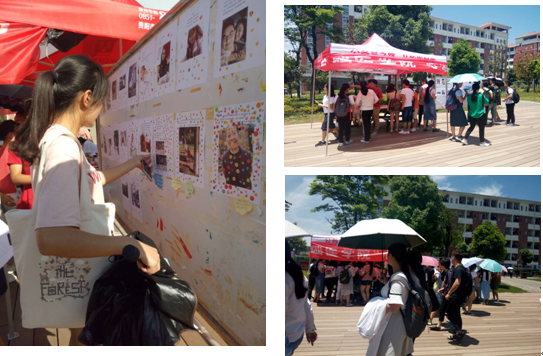 员工们为本次活动收集的优秀“心灵小故事”和“微笑捕手”作品布展在南校区一食堂门口,作品吸引了广大师生驻足欣赏、阅读、留言和投票,获得了师生的一致好评。
