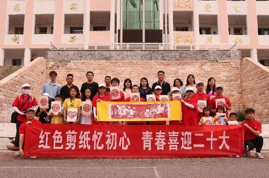 与此同时,志愿服务队召集周边儿童在保华中学开展“喜迎二十大,永远跟党走”的主题剪纸活动。