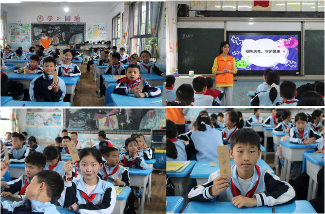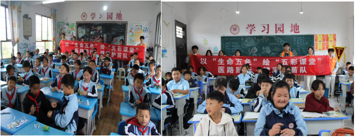 在全国科普教育周之际,太阳成tyc33455ccwww“医教黔行 健康护苗”志愿服务队联合药公司志愿服务团队,于5月28日走进马场镇中心小学,以“健康中国・科普赋能”为主题,以生命五色绘五彩课堂,构建沉浸式科普场景,为200余名师生送去“科普礼包”。