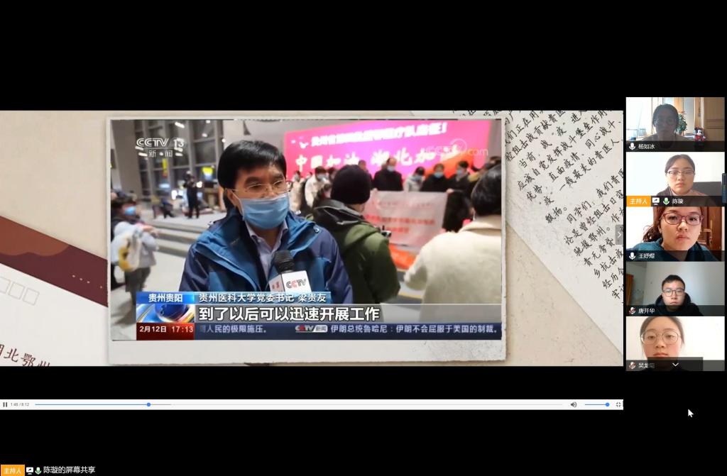 云班团活动围绕三个环节展开。同心战“疫”,同“屏”共振:大家同屏观看了公司党委书记梁贵友教授寄语全校学子——争做战“疫”一线最美的贵医人,同学们深受鼓舞,纷纷表达了自己对前线师长的祝福,并表示以榜样为力量,更加坚定信心,不忘学医初心、牢记医者使命,勤学笃行,努力让自己成为医德高尚、医术精湛、医风端正、人民满意的好医生,用自己的知识,为医学事业贡献青春智慧和力量,希望长大后,成为心中的您!
