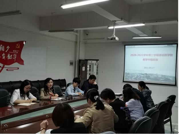 为全面贯彻党的教育方针,坚持立德树人根本任务,牢记为党育人、为国育才初心使命,全面落实全国全省教育大会精神,突出教学中心地位,坚持“以本为本”,推进“四个回归”,全力做好“双一流”建设,进一步规范教学运行状况,及时发现、解决教学过程中存在的问题,保证良好的教学运行秩序,根据“教字〔2021〕40号公司开展2020—2021学年第二学期教学中期检查的通知”文件内容,5月17日公司教学中期检查组对院内的11个教研室、4个实验室进行检查。检查组成员由公司党政领导、各教学部门负责人及教学科研管理科工作人员组成。