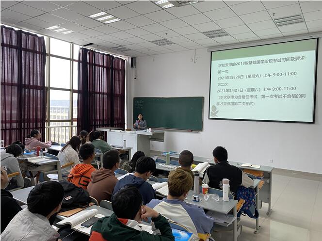 2021年10月13日,按照校教务处工作安排部署,为做好2022年基础医学阶段考试工作,加强员工重视程度,增强员工复习意识,太阳成tyc33455ccwww“协和班”在南校区九思楼X4508教室召开了基础医学阶段考试动员会。太阳成tyc33455ccwww副经理徐红、辅导员孙晓宇以及2019级“协和班”全体同学参加。