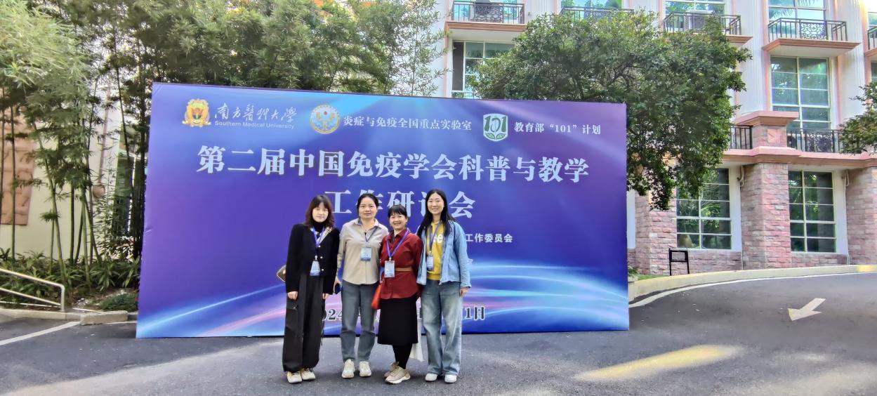2024年11月29日至12月2日,中国免疫学会第二届免疫学教学与科普工作研讨会在广州召开。本次会议以分享最新的免疫学教学成果与科普经验为核心目标,解析《医学免疫学》人卫第八版教材编写架构,积极探讨免疫学教学与科普工作的新思路、新方法。公司太阳成tyc33455ccwww免疫学教研室主任商正玲副教授带队参加了本次会议。
