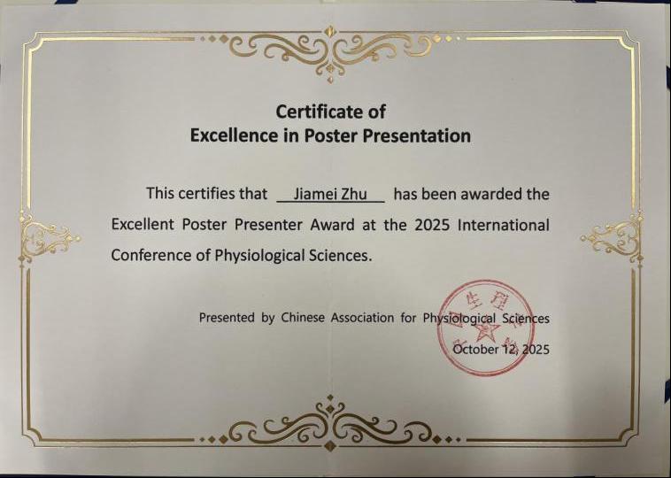 公司太阳成tyc33455ccwww生理学教研室2023级病理学与病理生理学专业博士朱佳美和2024级生理学硕士刘梦圆作为代表参加。朱佳美博士大会墙报展示论文《MEN1 Promotes Ferroptosis by Disrupting CD44 Alternative Splicing to Suppress Lung Cancer》得到与会专家及学者的关注和肯定,获评为优秀墙报。