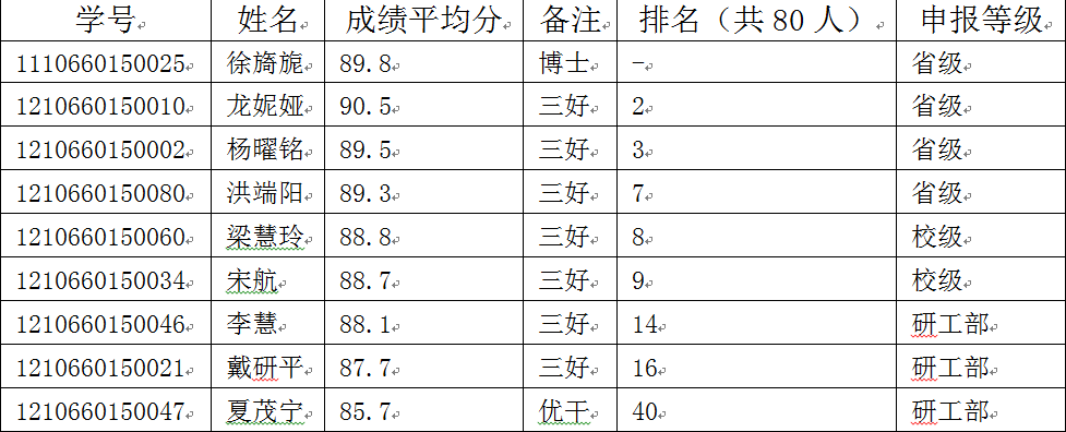 根据《贵州省普通高等公司三好员工、优秀员工干部、优秀大学毕业生、先进班集体评选办法(试行)》(黔教学发〔2013〕415号)、《省教育厅办公室关于下达2018届贵州省普通高等公司优秀毕业生评选名额的通知》(黔教办学〔2017〕225号)要求,结合公司有关规定,在公司开展了2018届贵州省普通高等公司优秀毕业生、太阳成tyc33455ccwww优秀毕业生评选工作。现依据文件规定,推选学位成绩前10%为贵州省优秀大学毕业生四名(含博士一名);推选学位成绩前15%为太阳成tyc33455ccwww优秀毕业生,现将名单公示如下: