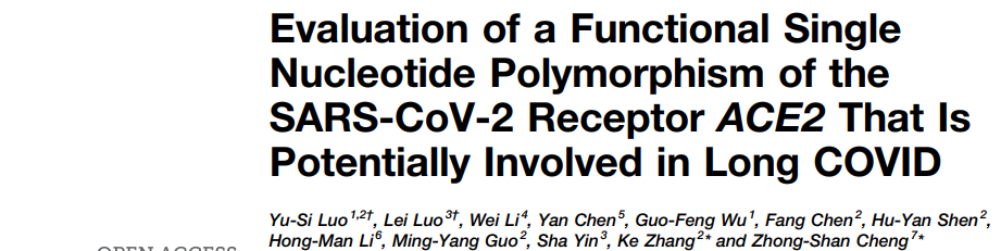 张科副教授课题组与美国St. Jude儿童医院研究人员合作研究的课题“Evaluation of a functional single nucleotide polymorphism of the SARS-CoV-2 receptor ACE2 that is potentially involved in long COVID”2022年7月18日以Brief Research Report Article形式在线发表于Frontiers in Genetics杂志(IF = 4.772,JCR Q1,中科院3区),引发广泛关注。