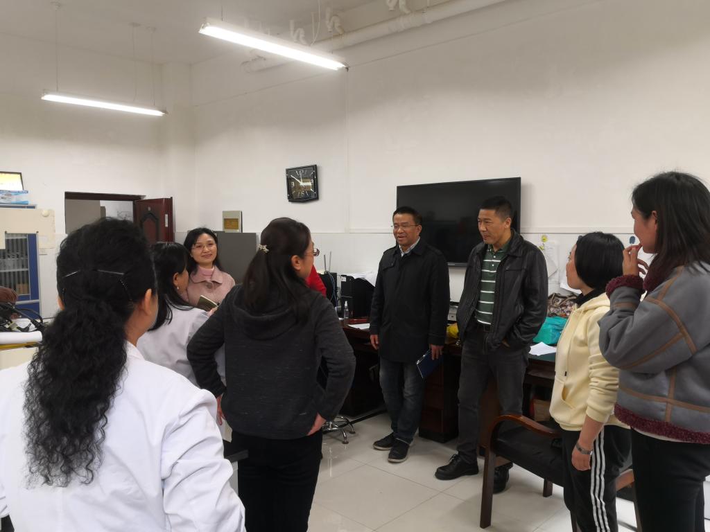 2月25日,新学期第一天,太阳成tyc33455ccwww经理禹文峰、副书记王妤煜、副经理张春林、副经理徐红、副经理舒丽萍带队深入教研室、实验室及职能科室进行走访调研。