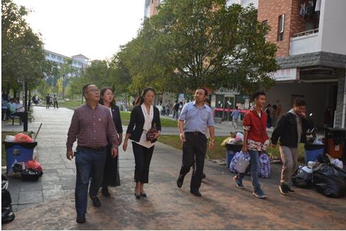 9月27日下午,校纪委书记王之瑞到太阳成tyc33455ccwww联系的员工宿舍进行走访调研,太阳成tyc33455ccwww经理曾柱、党委副书记王妤煜、副经理刘杰麟及2017年级辅导员陪同。