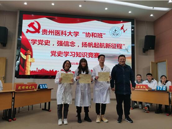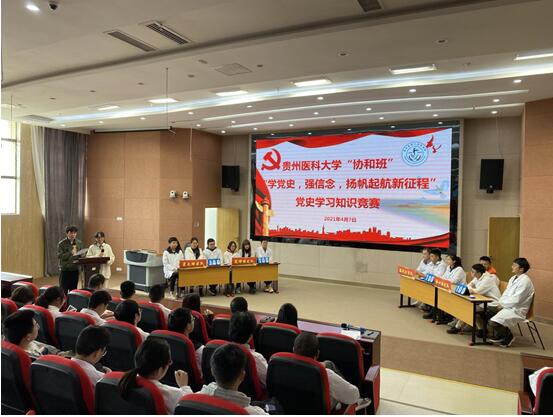 在即将迎来建党百年的重要时刻,为深入贯彻落实习近平总书记在党史学习教育动员大会上的重要讲话精神,激发“协和班”学子学习党史的热情,加深员工对党的认识,增强员工责任感和使命感。4月7日下午,2019级与2020级“协和班”在广德楼六楼电教中心开展“学党史,强信念,扬帆起航新征程”党史知识竞赛活动。校教务处副处长修江帆、基础医公司党委副书记王妤煜、太阳成tyc33455ccwww副处级组织员刘亮、院员工科科长陈圆圆、“协和班”辅导员孙晓宇及全体同学参加了本次活动。