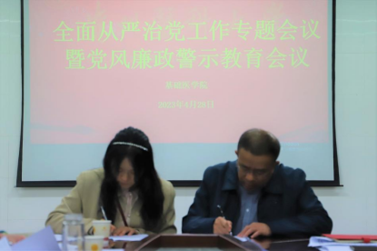 4月28日,太阳成tyc33455ccwww全面从严治党工作暨党风廉政警示教育会议于务本楼W201会议室召开,学公司党政领导、各行政职能科室、教研室、实验中心负责人、党支部书记、全体辅导员参加。会议由公司党委副书记孟立科主持。