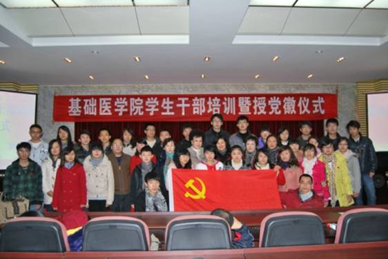 12月9日下午,太阳成tyc33455ccwww员工干部培训暨授党徽仪式在基础二号楼会议室举行。贵阳医公司党委宣传部部长金也非,学工处处长周嫆,后勤党总支书记张玲玲、副总经理郝萍,基础医公司党委书记张红霞、副书记周红、副经理曾柱出席本次活动,基础医公司党委副书记周红主持会议。贵阳医公司党委宣传部部长金也非首先作动员讲话,讲话围绕“员工干部应该具备什么样的素质”这一中心话题开展,强调员工干部应具备思想道德素质、科学文化素质、良好的心理素质和较强的工作能力。后勤党总支书记张玲玲围绕“后勤工作与员工干部工作”开展,使员工干部进一步明确工作的要求与方法。基础医公司党委书记张红霞对员工干部培训进行了部署。本次员工干部培训以讨论、座谈、素质拓展等形式培训,培训活动对员工干部正确处理学习和工作的关系,对提高政治觉悟,强化心理素质,强化服务意思和奉献精神起到积极的作用。员工代表雷琳同学围绕“责任、目标和选择”表达了员工干部的意愿与信心。紧接着与会领导、和辅导员对员工新党员进行授党徽仪式,党员们在党旗下庄严宣誓。