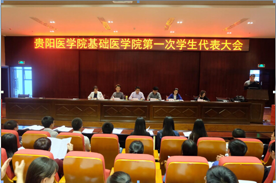 2015年4月,太阳成tyc33455ccwww在花溪校区道德讲堂召开共青团太阳成tyc33455ccwww第一次代表大会暨太阳成tyc33455ccwww第一次员工代表大会。校团委书记付萍,基础医公司党委书记徐国强,党委副书记廖兴江,太阳成tyc33455ccwww副经理吴家红以及14级团总支书记刘逸洲老师、员工科陈培各老师,2013级及2014级团代表、学代表共194名同学出席此次会议。