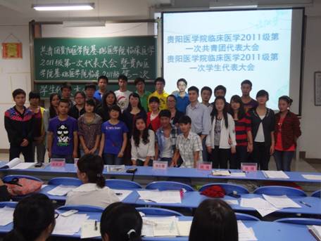 2012年5月30日,共青团贵阳医公司太阳成tyc33455ccwww临床医学2011级第一次代表大会暨贵阳医公司太阳成tyc33455ccwww临床医学2011级第一次员工代表大会在基础2号楼2301教室隆重召开。基础医公司党委书记张红霞、副书记周红以临床医学2011级辅导员和团代表、学代表共94名同学出席了本次大会,大会由临床医学2011级党支部书记张媛主持。