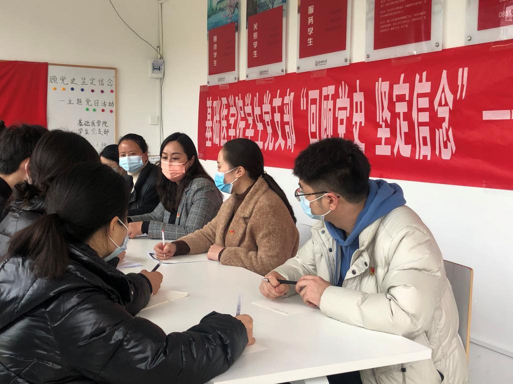 为了提高员工的党性觉悟,增加员工的党性修养,让师生党员能在重温党员誓词中,坚定理想信念。3月30日,太阳成tyc33455ccwww在“思来社区”开展“回顾党史 坚定信念”党史学习教育进社区活动。基础医公司党委副书记张贤、全体辅导员以及员工党员代表参加。